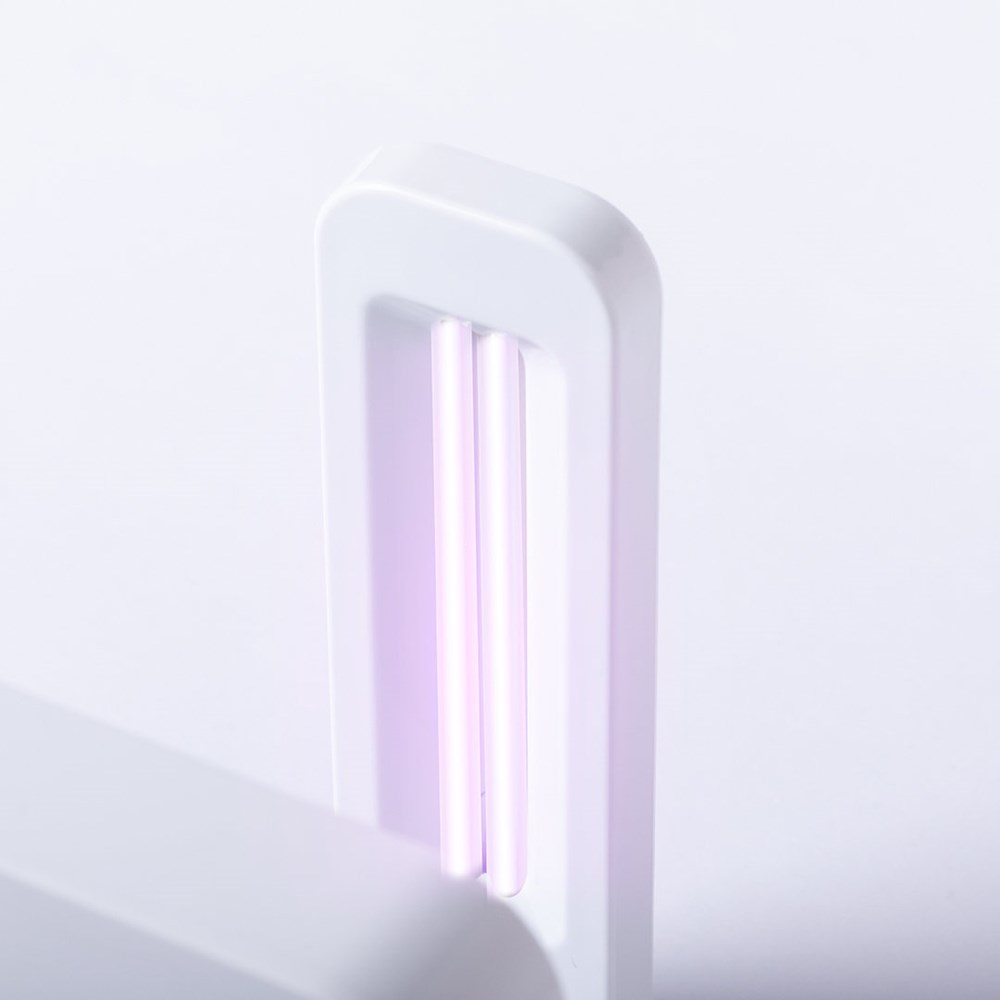 Ultraviolet light sterilizer lamp type C with integrated wireless smartphone charger. Specially designed to eliminate microorganisms and bacteria in everyday objects such as the smartphone, keys, glasses, face mask, headphones, smartwatch... Made of resistant ABS material with a glossy finish and presented in an attractive individual design box. Easy to use, just place the object to be sterilized on the base of the lamp. Output power 2.5W, wavelength 254 nm and voltage 3V. 1000 mA USB output, with 10W fast charge function and 1 meter long micro USB cable included. 15 and 25 minutes sterilization time with auto-off function. User manual available in Spanish and English. CE, RoHS and germicidal effectiveness certification available. For proper use of the product, avoid contact with skin and eyes.