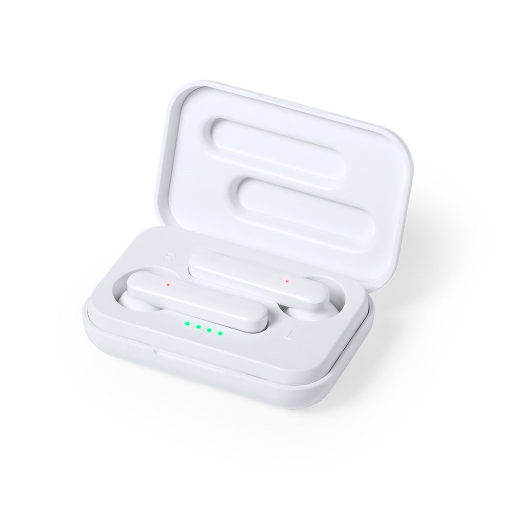 Antibacterial earphones with Bluetooth® 5.0 connection in an elegant white color design in glossy finish. Ergonomically designed, including an integrated, touch control button in the earphone, with matching color charging base. Hands free function and rechargeable micro USB cable included. Presented in an individual deluxe case with hinged cover and in an attractive design box. Products with antibacterial treatments are able to drastically reduce the bacterial levels present on the surfaces of the materials, thanks to the addition of permanent static microbial agents, with high effectiveness in inhibiting and preventing bacterial contamination. Item according to the ISO 22196 standard, which determines the antibacterial activity in plastic materials and non-porous surfaces. This allows us to know the effectiveness of microbial inhibition that additives have on treated objects by means of a quantitave evaluation.