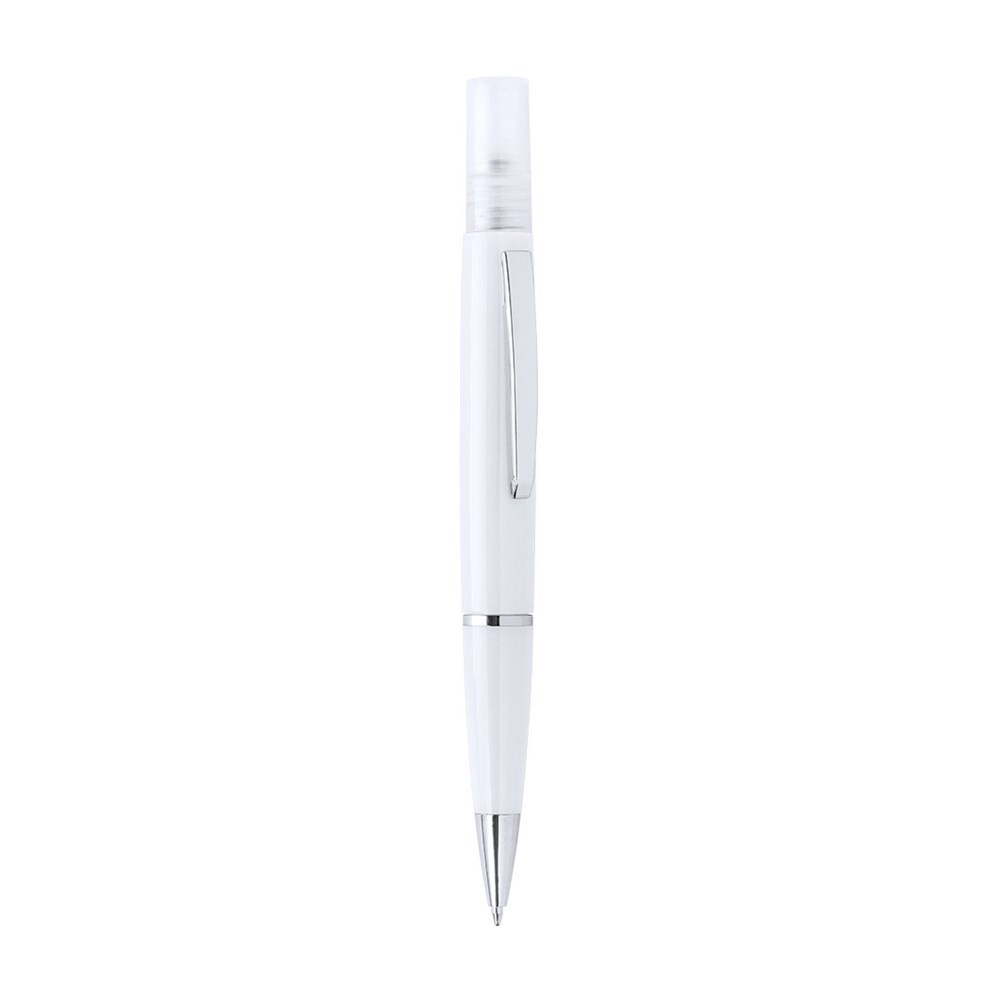 Sterilizer pen with rechargeable sprayer and protective hood. Made of resistant ABS with shiny finish. Elegant metal clip and comfortable handle. Blue ink. Sprayer capacity 3 ml. Liquid not included. Available in a wide range of colours.