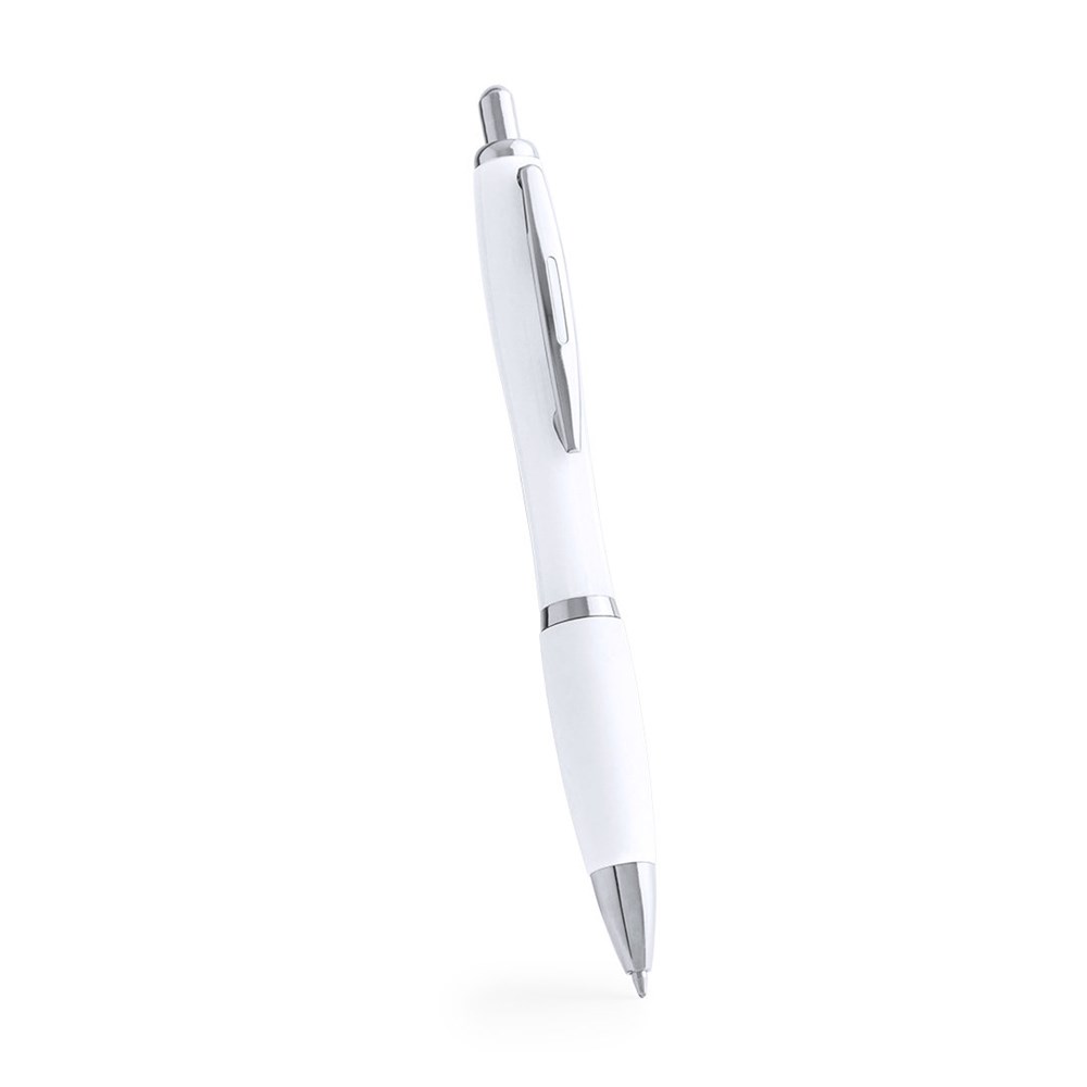 Antibacterial ball pen. Made of ABS material, specially processed to inhibit and prevent bacterial growth on the body of the pen through nano silver technology, a special treatment made with silver ions. Push-button mechanism, with accessories in silver color and body in white color. Die-cut clip and comfortable grip, with blue ink. Item according to the ISO 22196:2011 standard, about the measurement of the antibacterial activity in plastics and other non porous surfaces.