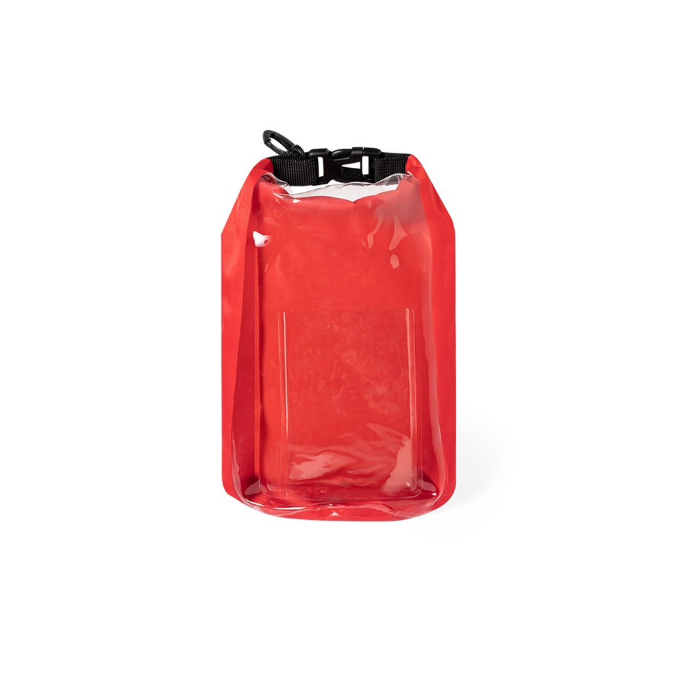 Waterproof bag with 2l capacity, including tactile, transparent window for smartphone. Made in resistant ripstop, with security lock, handle with buckle adjustment, and carabiner. Available in a variety of bright colours.
