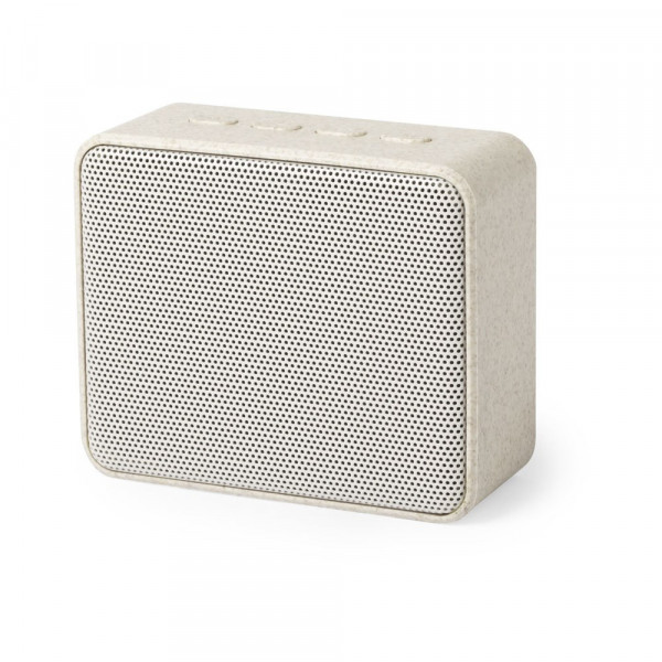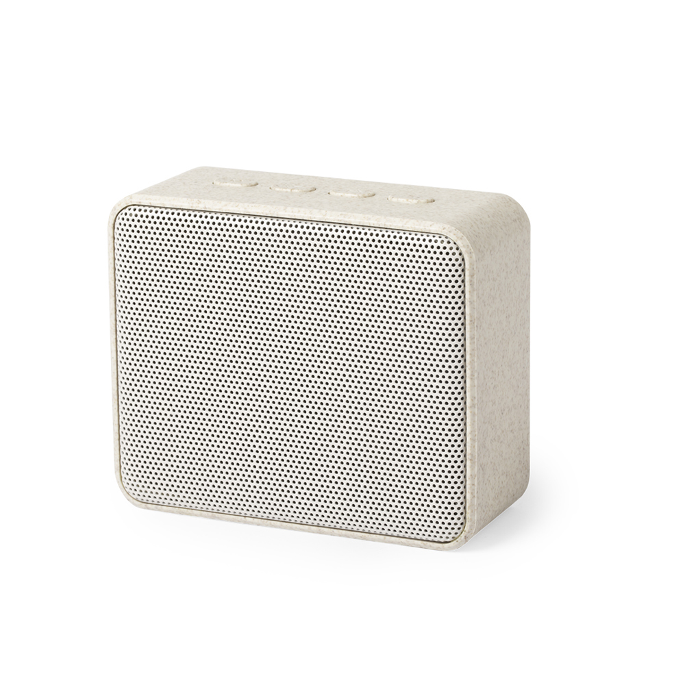 Nature line, Bluetooth® 5.0 docking speaker. Shell in wheat straw, to encourage the use of natural raw materials and reducing contaminant emissions, With 3W sound power, with USB player. Compatible with iOS and Android, includes a micro USB charging cable and comes in an individual eco design box. With non-slip rubbers at the base.