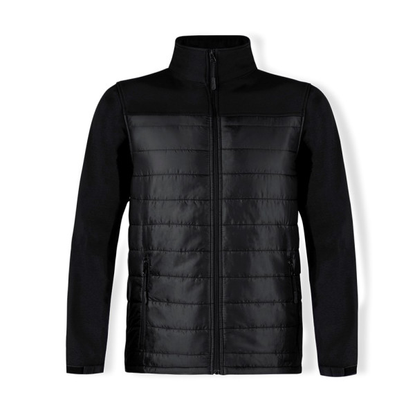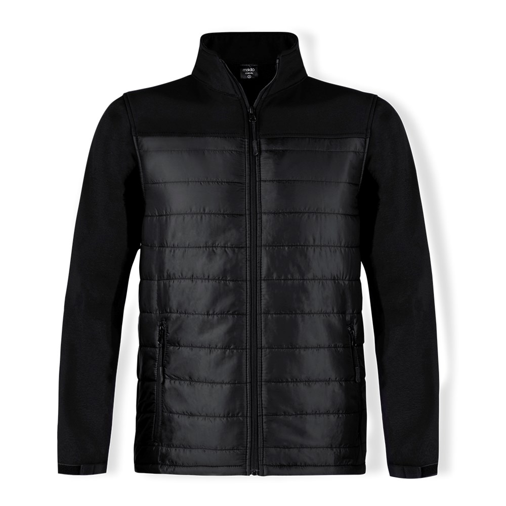 Waterproof and breathable jacket in combination of soft shell and polyester materials. In an elegant black color construction, with zipper closure and side zipper pockets, with pullers for easy opening. Adjustable cuffs and available in sizes S, M, L, XL, XXL.