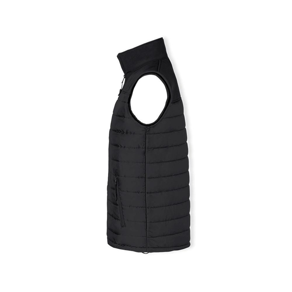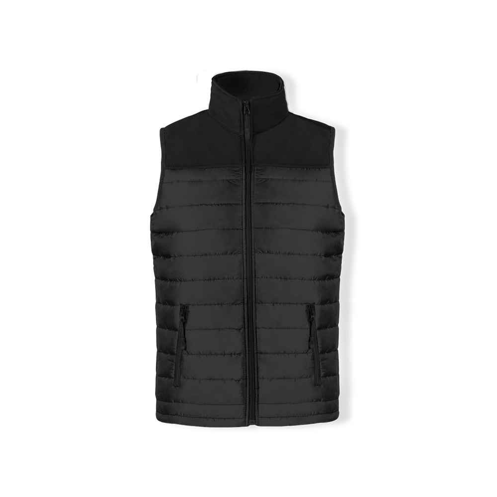 Waterproof and breathable vest in combination of soft shell and polyester materials. In an elegant black color construction, with zipper closure and side zipper pockets, with pullers for easy opening. Available in sizes S, M, L, XL, XXL.