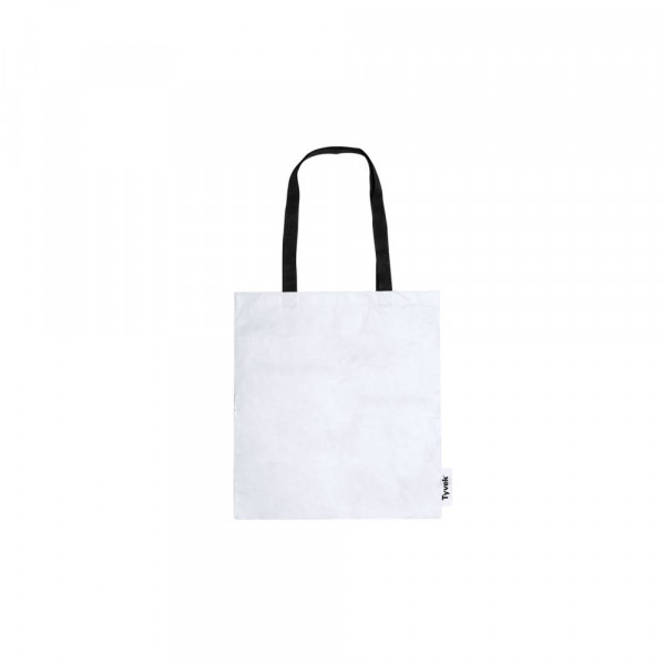Bag in soft and lightweight Tyvek® material, 100% recyclable and made of polyethylene fibers, especially remarkable for its resistance, durability and easy printability. Black color, reinforced, 70 cm length handles and resistance up to 7 kg weight. Tyvek® distinctive in side label.
