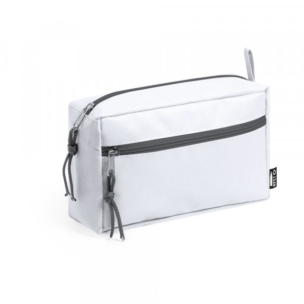 Nature line beauty bag in RPET material, obtained from recycled plastic materials, to encourage the reusing of plastic residues and contribute to the Earth’s sustainability. Main compartment and front pocket with with zipper closure and straps in pullers for a comfy opening, with carrying strap in matching color and RPET distinctive side label. Available in a wide range of colors.