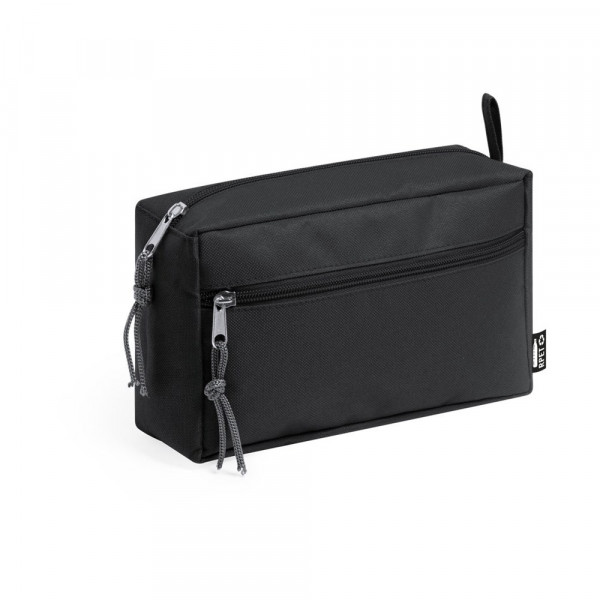 Nature line beauty bag in RPET material, obtained from recycled plastic materials, to encourage the reusing of plastic residues and contribute to the Earth’s sustainability. Main compartment and front pocket with with zipper closure and straps in pullers for a comfy opening, with carrying strap in matching color and RPET distinctive side label. Available in a wide range of colors.