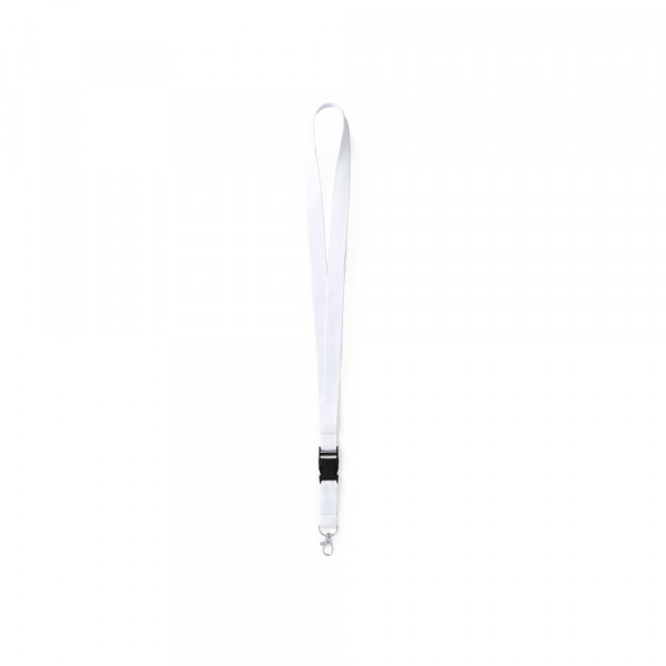Lanyard in resistant polyester with multifunction buckle closure and metal hook. Available in a wide range of vivid colors.