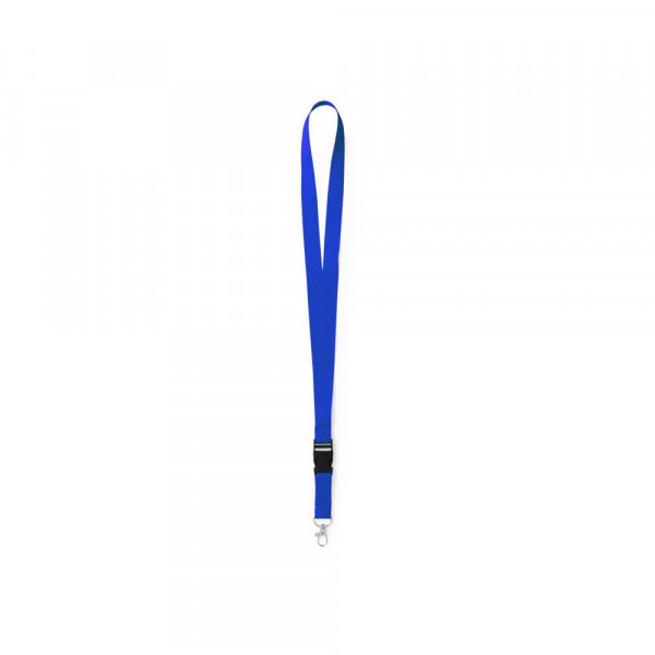 Lanyard in resistant polyester with multifunction buckle closure and metal hook. Available in a wide range of vivid colors.
