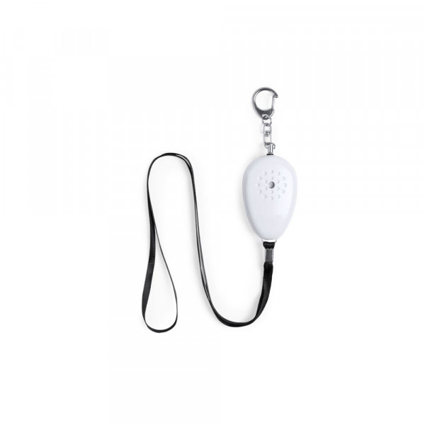 Personal alarm with powerful, ultra loud volume sound. Easily operated, just pull the string and the alarm will sound. With metal, adjustment carabiner and including a 36 cm length, resistant string. Battery powered (button cell included) and presented in an attractive, individual, design polybag.