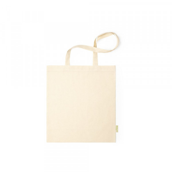 Nature line bag. natural, organic cotton in 120 g/m2. 70cm length, reinforced handles with stitched finishing. Organic distinctive in side label and resistance up to 8kg of weight.