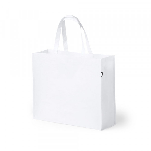 Nature line bag in RPET material, obtained from recycled plastic materials, to encourage the reusing of plastic residues and contribute to the Earth’s sustainability. In laminated material of 105 g/m2 with mat finishing, medium size handles and reinforced stitching and base. Resistance up to 5 kg weight. Available in a wide range of colors, with RPET distinctive label.