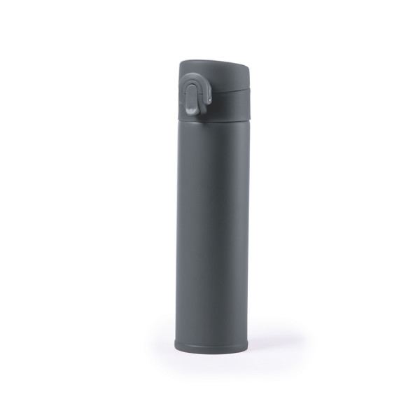 330 ml thermo in stainless steel. Double wall for a better and longer preservation of liquid’s temperature and including an easy, button opening mechanism. Available in a wide range of colors and presented in an attractive design box. Instruction manual available in Spanish and English.