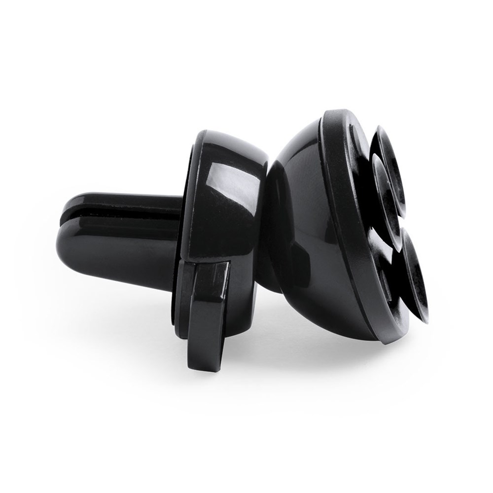 Ventilation grille smartphone holder with suction pads for the device. In an elegant black color design, with 360º rotation and 45º angle. Presented in an attractive design box.