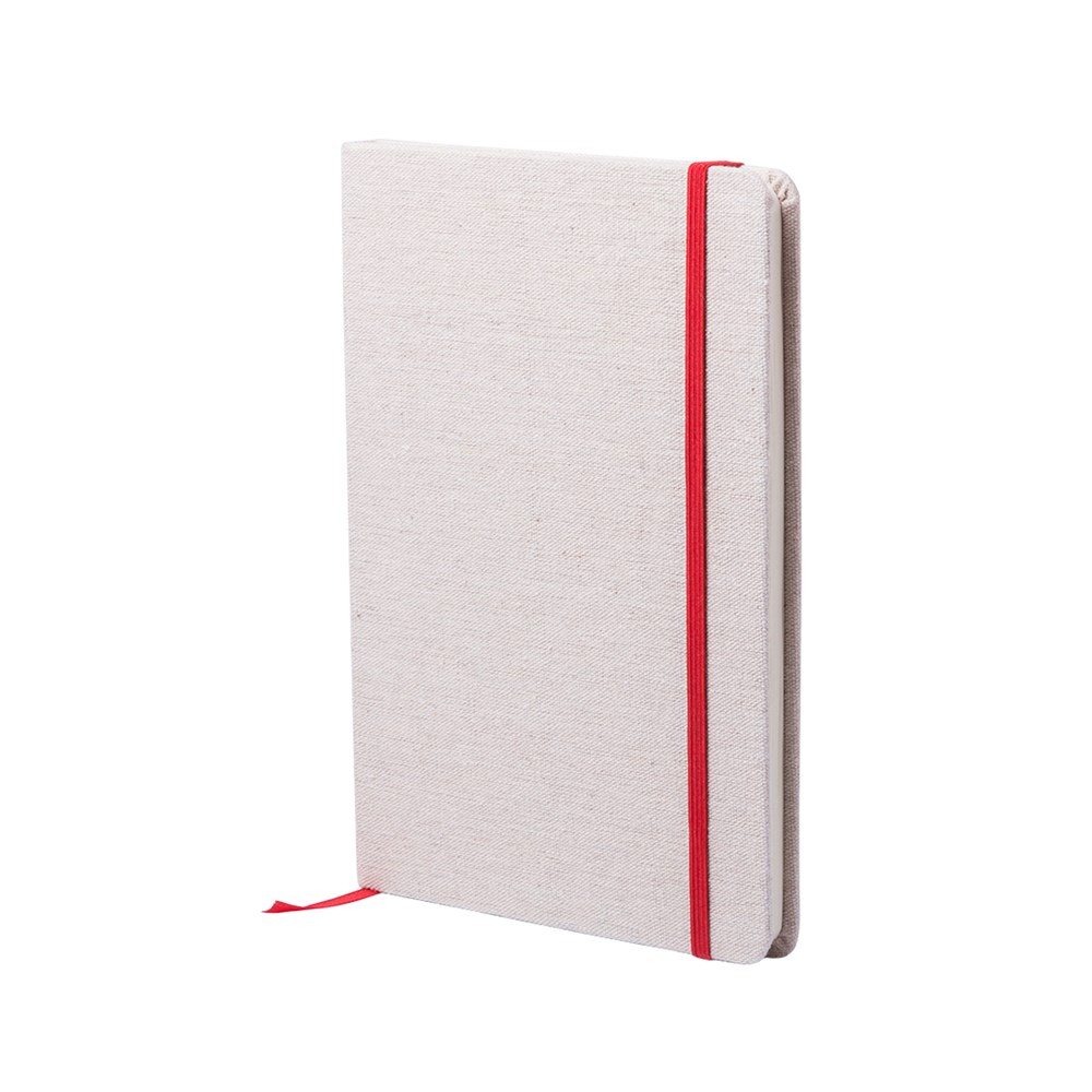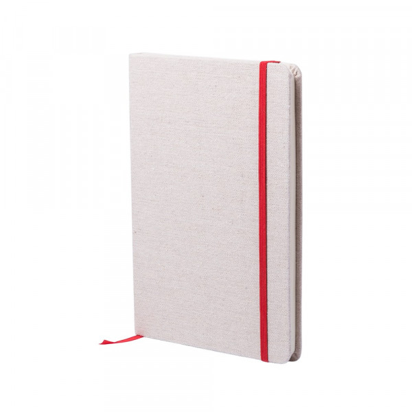 Notepad in natural materials. Covers in soft, natural color cotton. With elastic closure band and bookmark in matching, eye-catching colors. Including 80 plain sheets.
