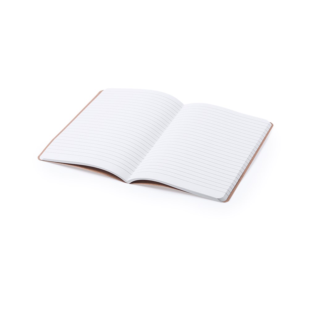 Eye-catching notepad with recycled cardboard covers and matching color, stitched finishing on side. Including 60 sheets with striped layout.