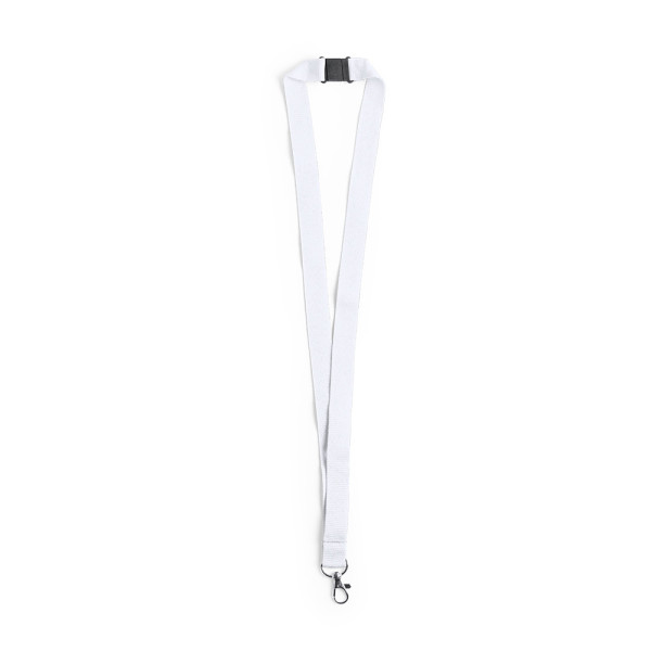 Lanyard in resistant polyester, with neck security accessory and metal carabiner. Available in a... more