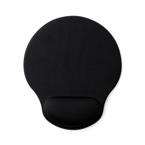 Mouse pad made of soft polyester. With non-slip silicone base and padded wrist cushion to prevent stress and pain. Available in a wide range of colours.
