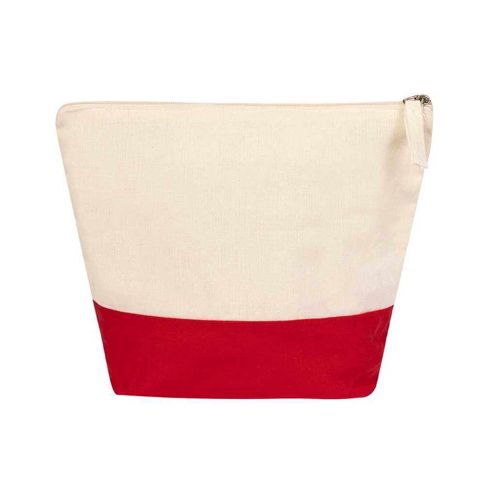 Multipurpose beauty bag in. Cotton material of 140g/m2. Bicolor design, with body in natural color cotton and base in a wide range of vivid colors. Matching color zipper, with chromed puller.