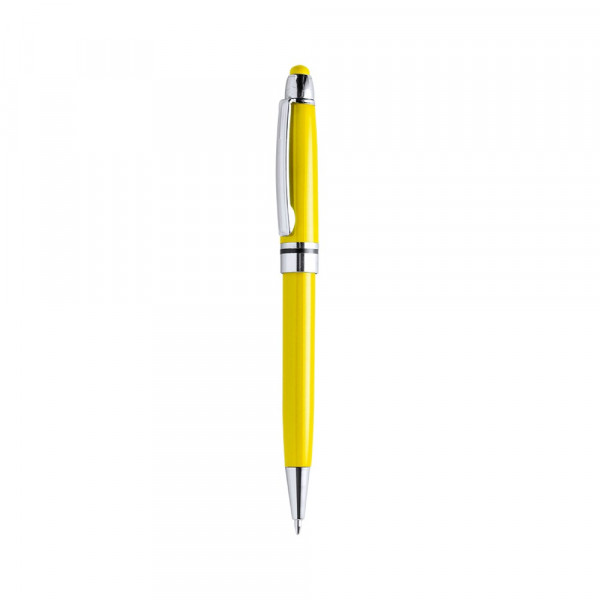 Pointer ball pen in a colorful design, with body in a wide range of bright, vivid colors, matching with the pointers. Push-up mechanism, with chromed details and metal clip. Jumbo cartridge and blue ink.