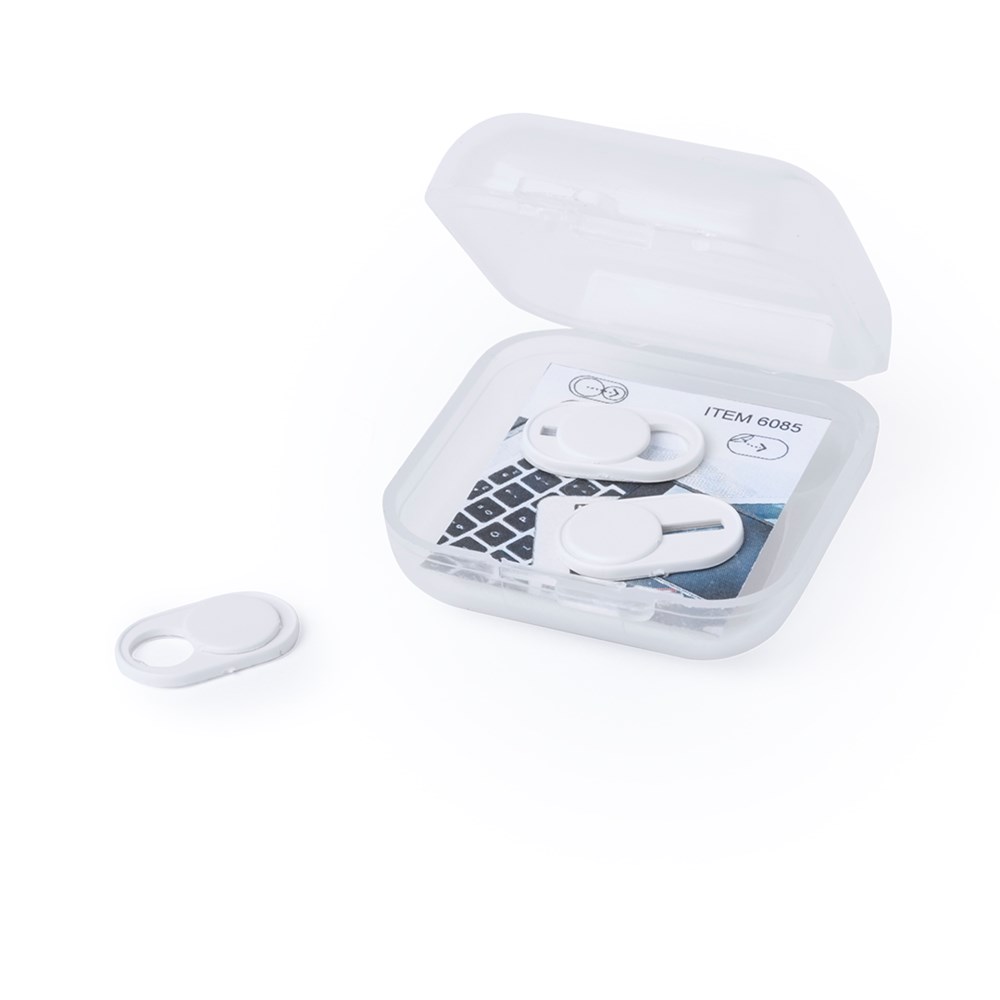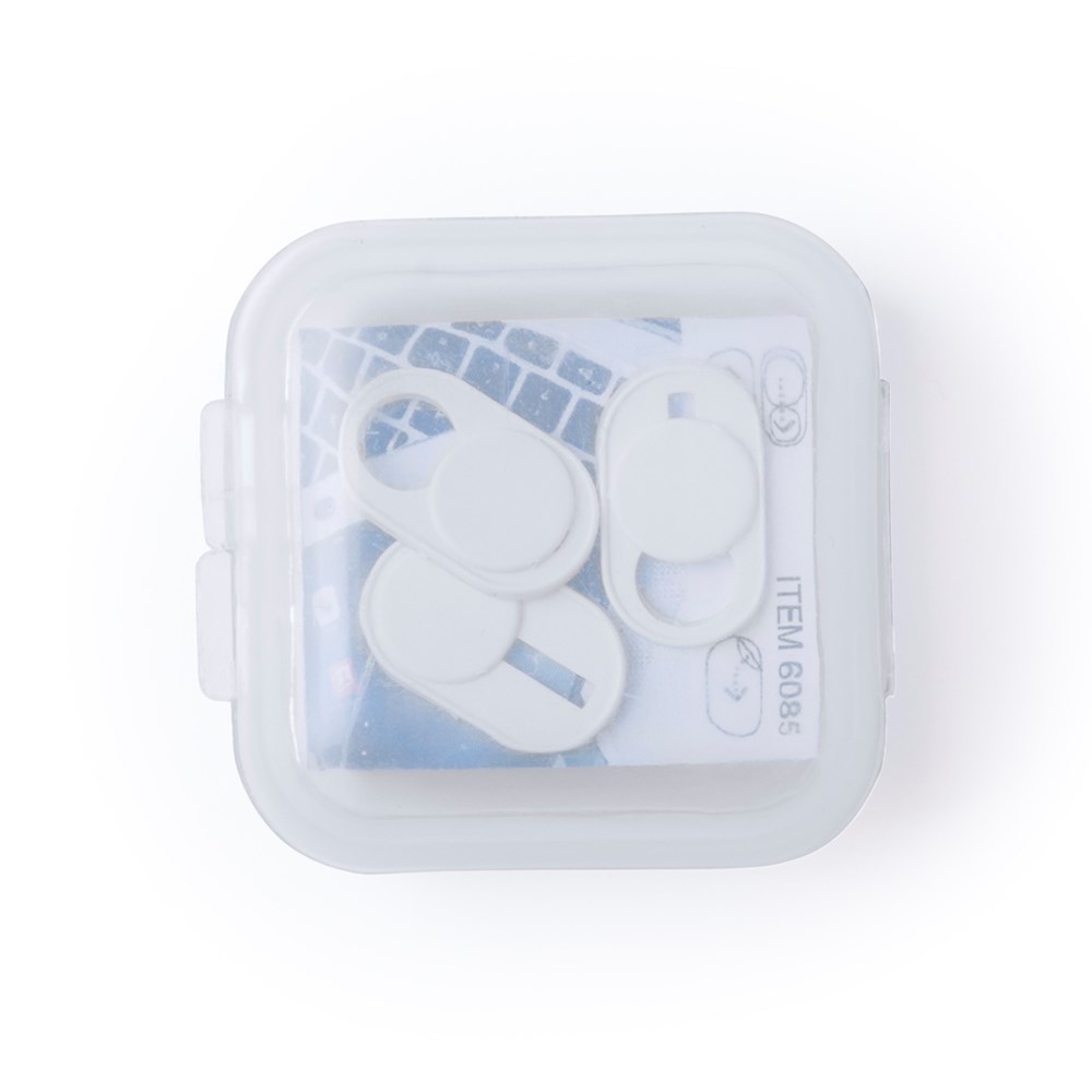 Cover for mobile devices camera to protect privacy. Ultra compact size and served in an individual, 3 pieces case. Available in white and black colors. Set presented in an individual bag with design inlay card.