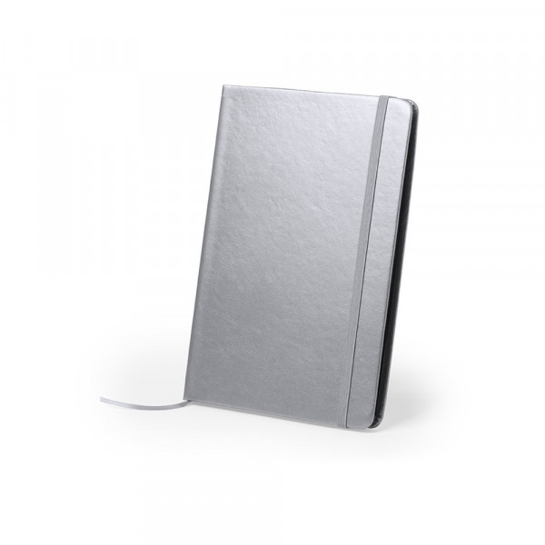 PU leather notepad in eye catching metallic colors. Available in golden, silver and golden pink colors. With hard covers, elastic band and matching color fabric bookmark. Including 80 plain sheets in kraft color finishing.