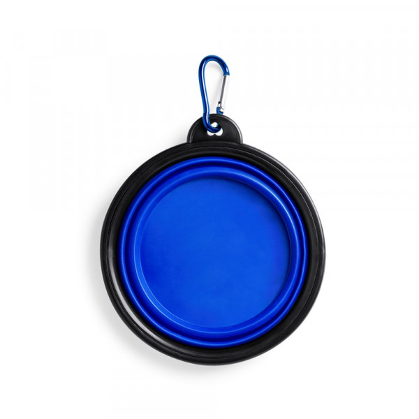 Folding bowl for pets in resistant TPR material. Designed for solids and liquids, with 450ml capacity and matching color metal carabiner. Available en a wide range of colors.