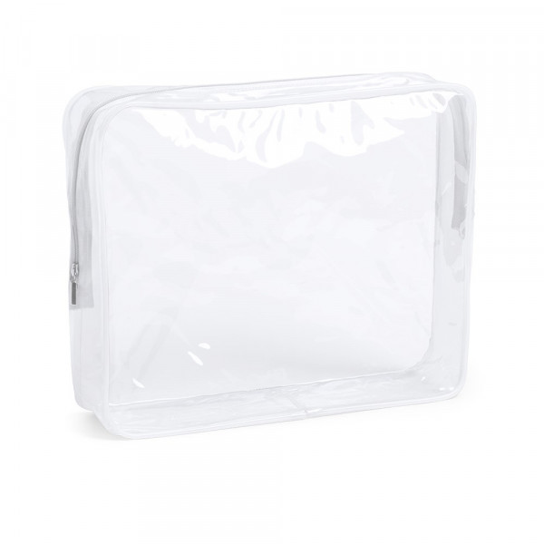 Multi purpose beauty bag in resistant PVC material, combining transparent and translucent materials. Available in bright tones with matching color zipper closure.