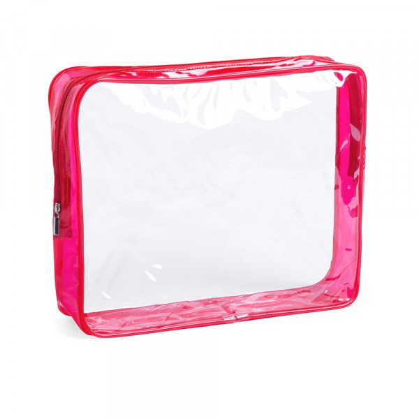 Multi purpose beauty bag in resistant PVC material, combining transparent and translucent materials. Available in bright tones with matching color zipper closure.