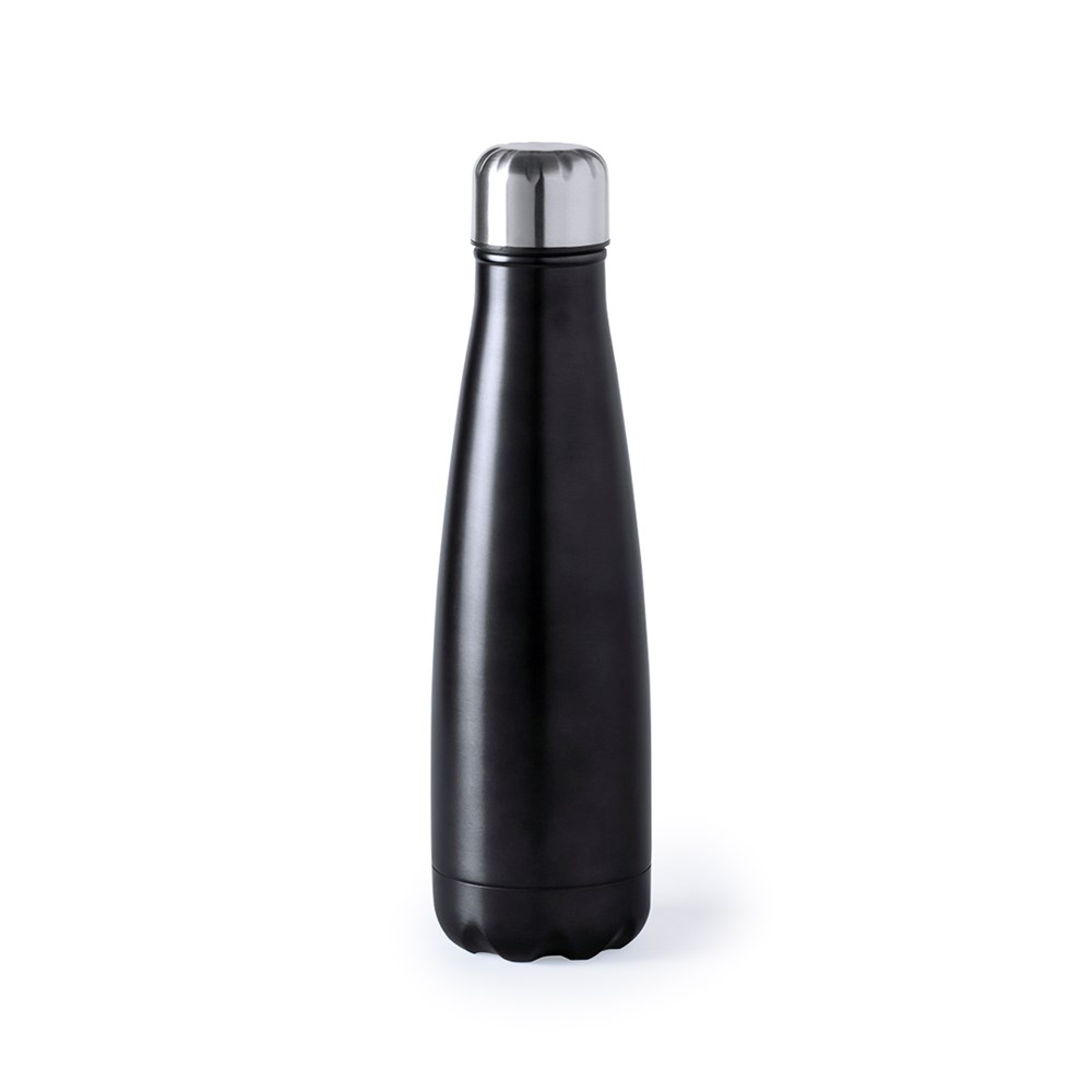630ml stainless steel bottle, with screw-on safety cap. Matt finish in bright and varied colours; presented in an individual box.
