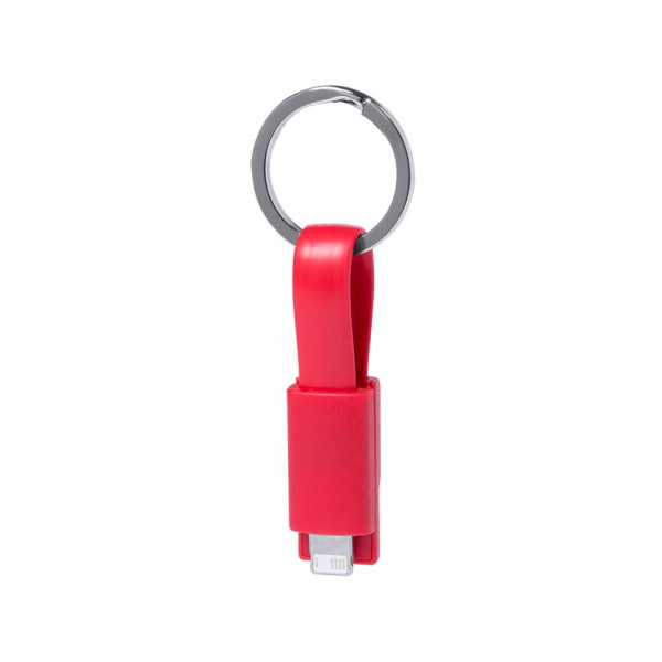 USB keychain charger in a wide range of bright tones. With dual micro USB/lightning connection. Presented in an individual bag.