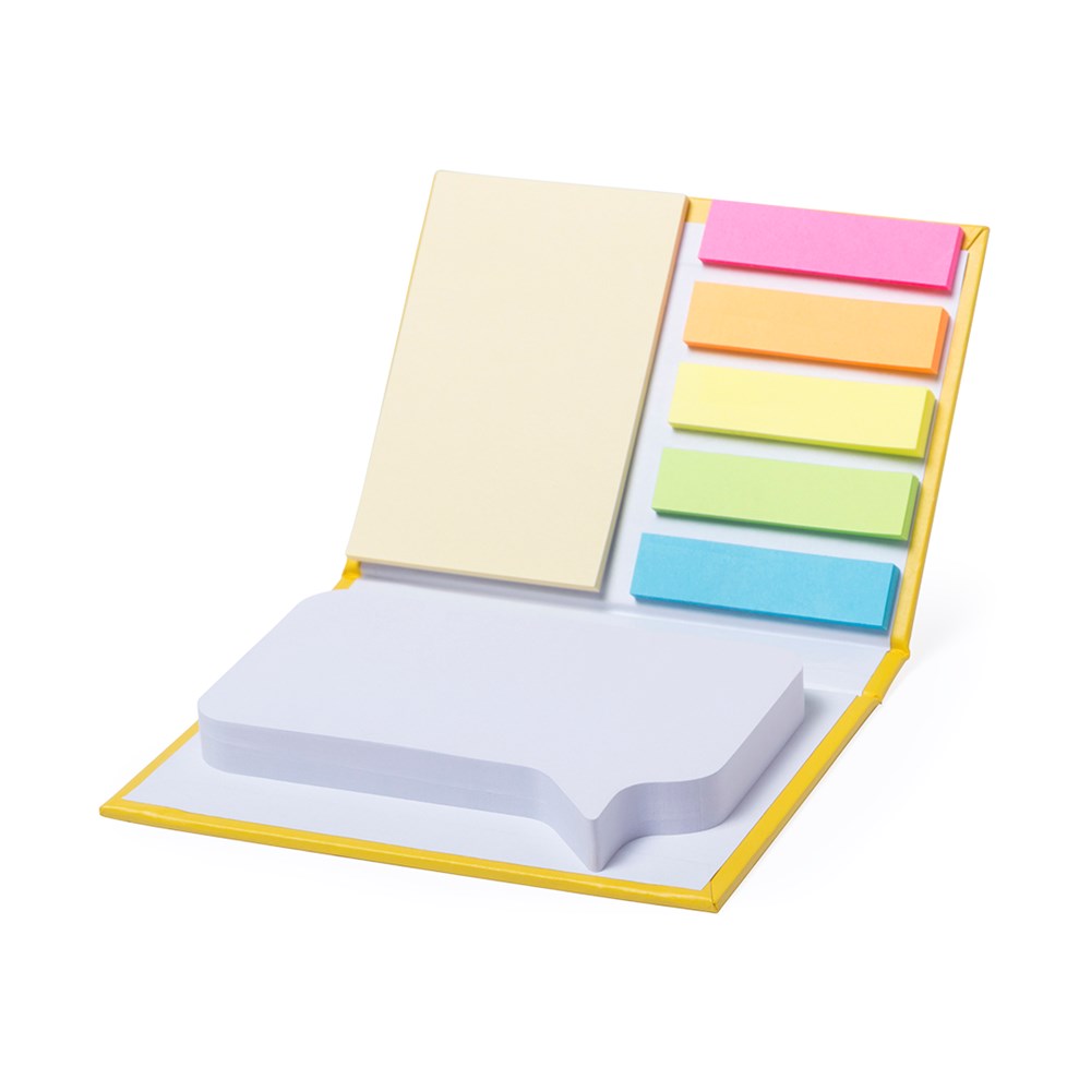 Original sticky notepad with sandwich design and soft-touch covers in resistant, rigid recycled cardboard in a wide range of tones. With 100 large sticky notes die-cut into sandwiches, 25 medium sized and 125 mini sticky notes.
