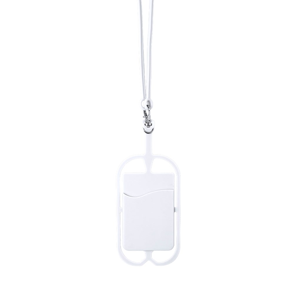 Practical and comfortable silicone lanyard in bold colors with built-in smartphone holder and card pocket. With adjustable accessory and carabiner closure. This item can only be printed in 1 colour (Black/White).