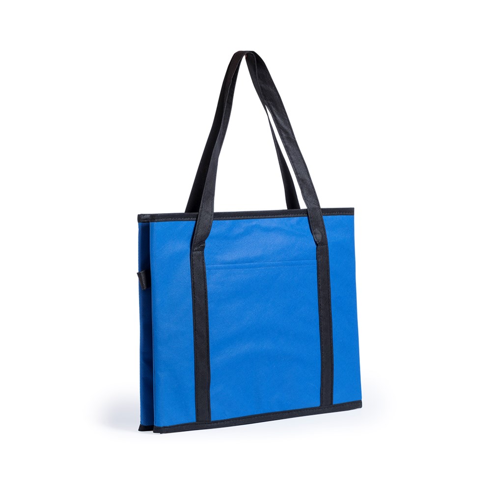 Folding organizer for the boot of the car in resistant, brightly colored non-woven. With reinforced carrying handles, side handle, front pocket and a rigid base for a firm fitting.