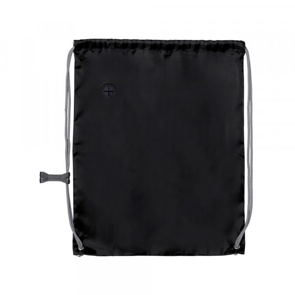 Drawstring backpack in soft polyester 190T in bright tones. With headphones outlet, with extra thick, grey color, self closing strings. With adjustment accessory and corners with metal eyelets and reinforcement.