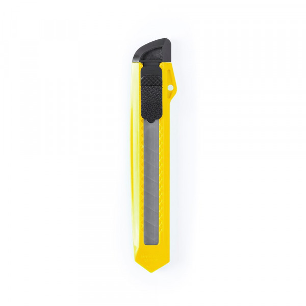 Cutter with wide blade and ergonomic die-cut handle. Removable hood for blade cutting adjustment.
