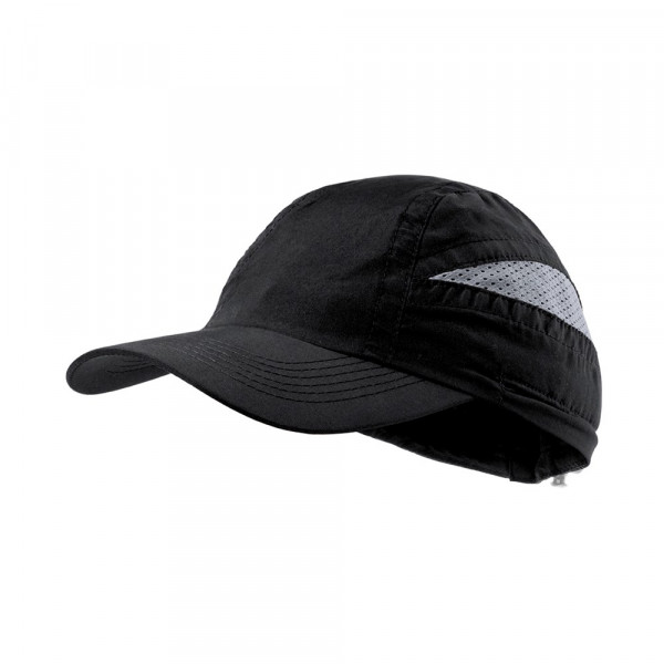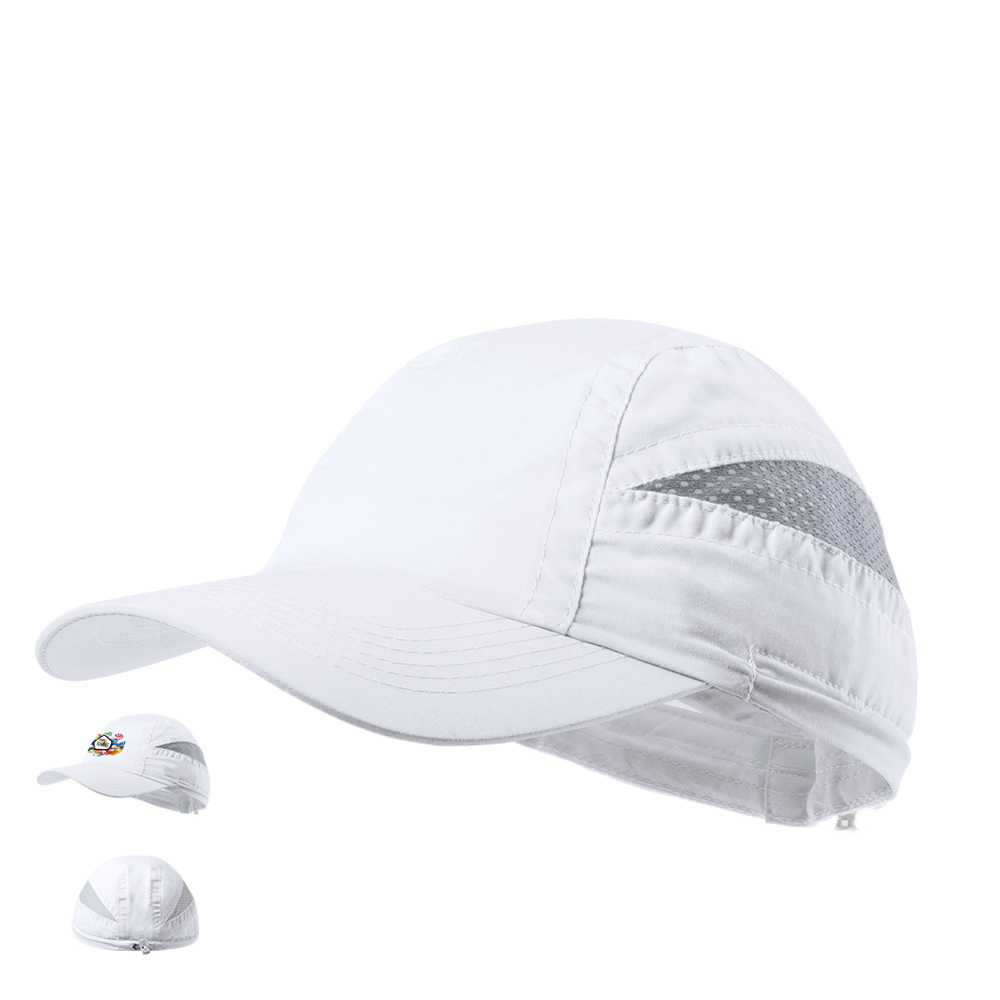 7 panel sports cap in soft microfiber of bicolored design in vivid colors. Elastic closure with fitting accessory and mesh panels for sweat.