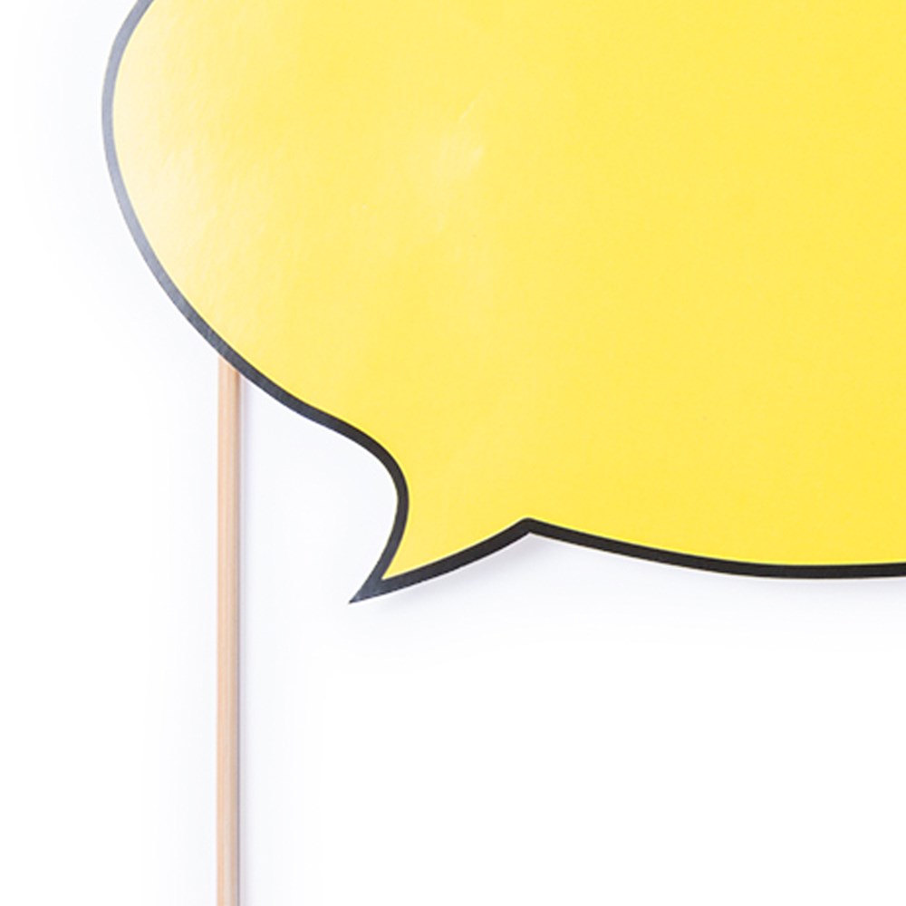 Selfie accessory in the shape of a sandwich. In striking yellow color and with a wide printing area. High gsm paper, with wooden handle.