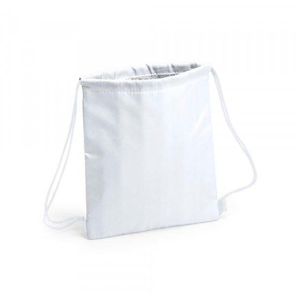 Drawstring cooler backpack for children in soft polyester 210D, with cheerful colors and in a wide range of tones. With black self closing ropes and reinforced corners. Isothermal inside in aluminum finish.