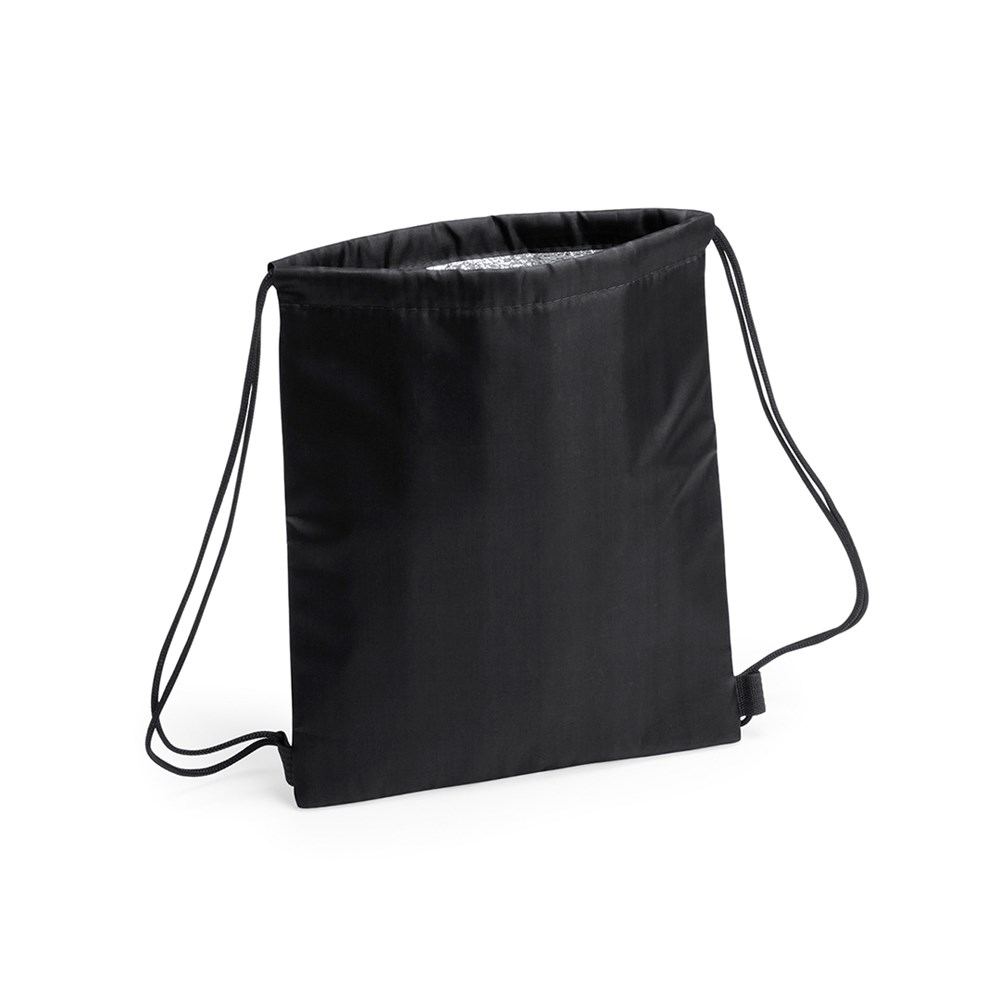Drawstring cooler backpack for children in soft polyester 210D, with cheerful colors and in a wide range of tones. With black self closing ropes and reinforced corners. Isothermal inside in aluminum finish.