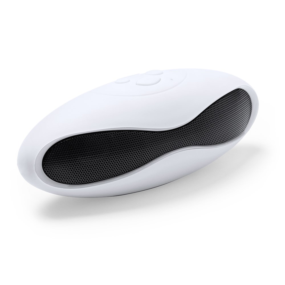 Bluetooth® connectivity speaker. With bold bicolor design and soft finishing. With Bluetooth® 3.0 connection, it delivers 3W of power, has hands-free function, a slot for mini SD cards of up to 32 GB of capacity, FM radio function, auxiliary line input via 3,5mm jack connection and non-slip rubber pads at the base. Compatible with iOS and Android, includes mini USB charging cable, auxiliary 3.5mm jack cable and comes presented in an attractive design box.