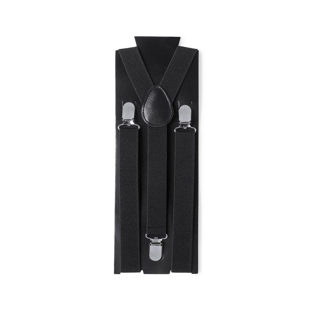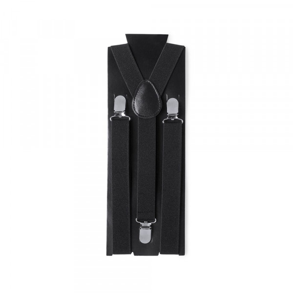 Elastic polyester suspenders in sober colors with metallic accessories. With matching color PU leather back reinforcement and presented in an original black individual cardboard.
