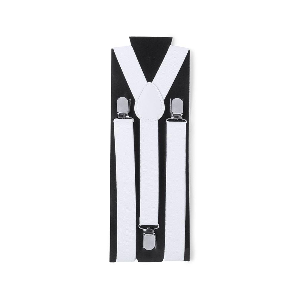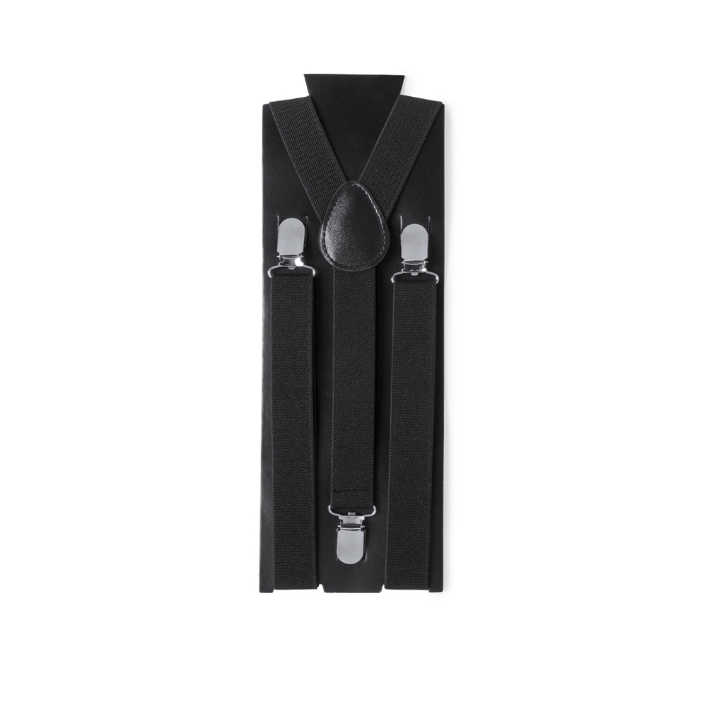 Elastic polyester suspenders in sober colors with metallic accessories. With matching color PU leather back reinforcement and presented in an original black individual cardboard.