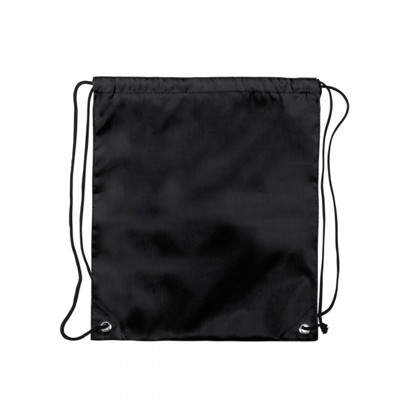 Drawstring backpack for children in soft polyester 210D and in bright tones. With black self closing strings and corners with metal reinforcement eyelets.