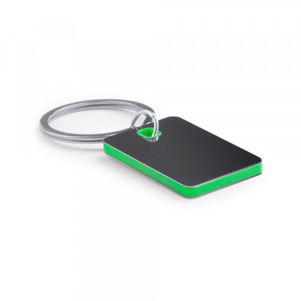 Stainless steel keychain in bicolor design, in varied colors and especially designed for laser printing.