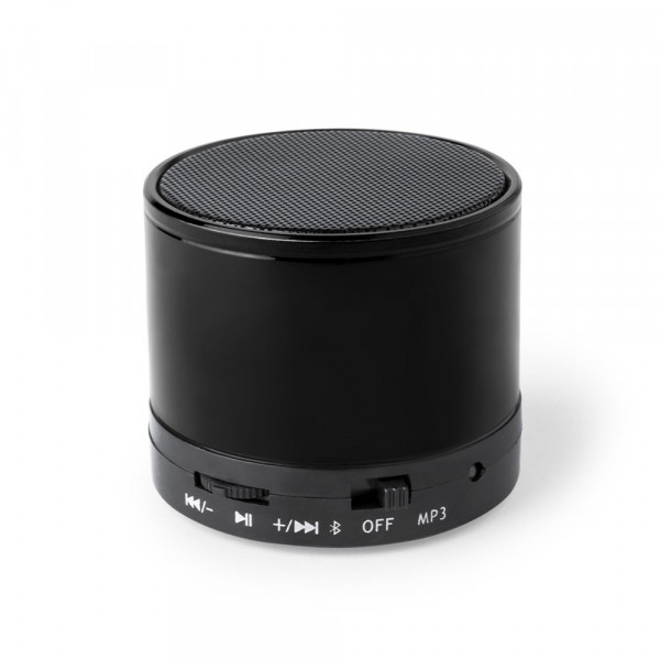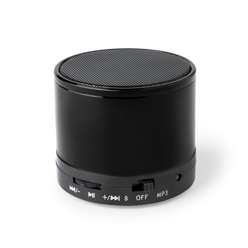 Compact speaker with Bluetooth® 5.0 connection AND 3W power. Hands-free function, slot for mini SD cards up to 64 GB capacity, FM radio function, and Aux-in via 3.5 mm jack connection. With non-slip rubber pads on the base. Compatible with iOS and Android, includes charging cable and 3.5mm jack AUX cable. Presented in an attractive design box, with instruction manual in English and Spanish. Available in a wide range of metallic colours.