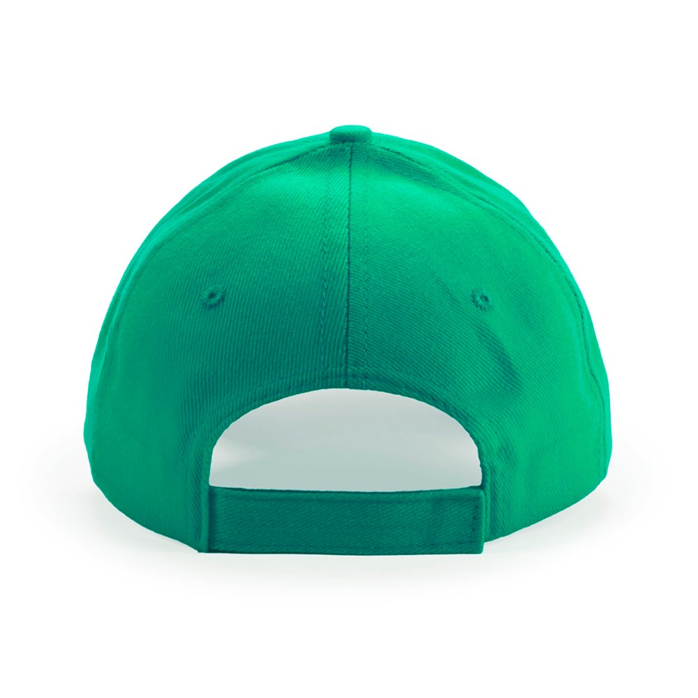 6 panel cap in brushed cotton material. In a wide range of bright tones and padded visor. Embroidered ventilation holes and adjustable velcro closure.
