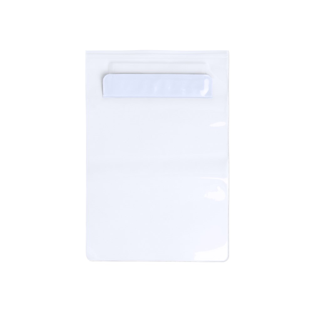 Practical waterproof, multi purpose, XL size, PVC bag with tactile surface, especially designed for tablets up to 9.7 inches and with double safety system for watertightness. With front flap in a wide range of colors.