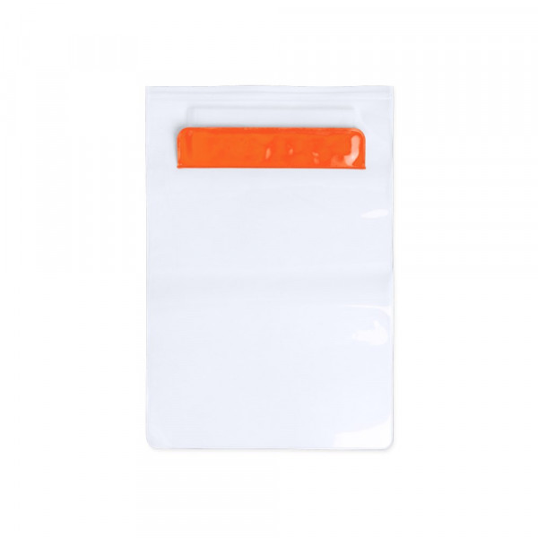 Practical waterproof, multi purpose, XL size, PVC bag with tactile surface, especially designed for tablets up to 9.7 inches and with double safety system for watertightness. With front flap in a wide range of colors.