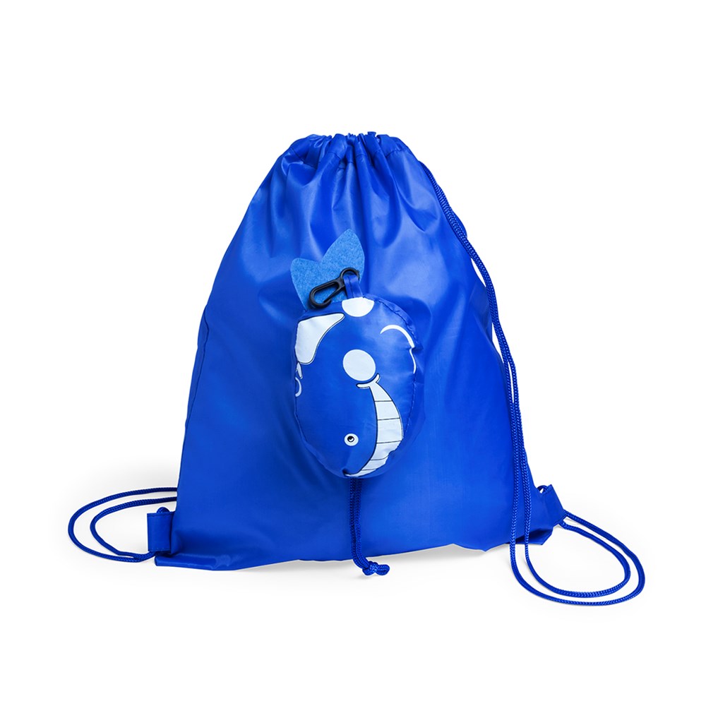Drawstring backpack for children, in 190T polyester with a cheerful animal design and in a wide range of tones. With carrying handle, self closing strings and matching color side reinforcements. Small folding size in the shape of animals, with matching color string and adjustment accessory.
